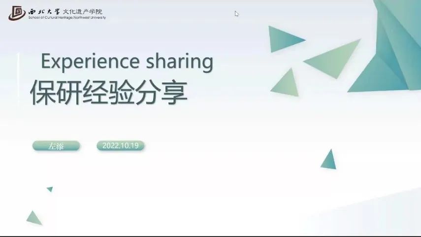 左添同学首先向大家介绍了准备保研的时间线,罗列了在文物保护以及科技考古专业较为优秀的高校以及保研需要进行的材料准备,并根据自己的切身经历介绍了复旦大学和中国科学院大学夏令营和预推免面试这两方面的详细情况,最后告诉了大家目前阶段还可以在成绩、英语、科研这三方面多加努力。
