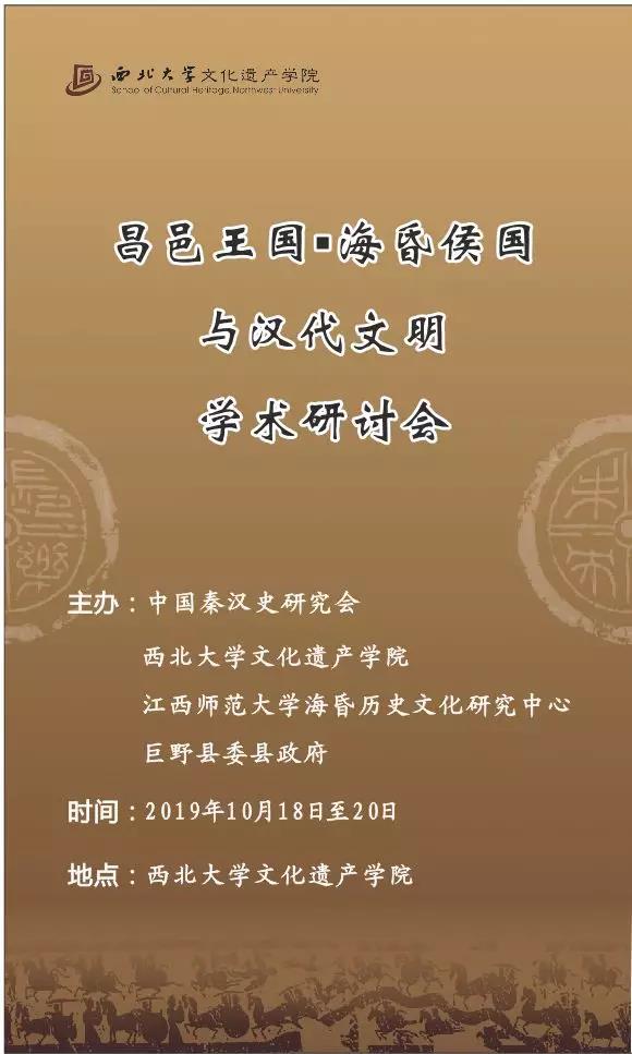 昌邑王国・海昏侯国与汉文明学术研讨会将于2019年10月18日至20日在足球竞彩网-足球博彩网站 召开。本次会议由中国秦汉史研究会、足球竞彩网-足球博彩网站 、江西师范大学海昏历史文化研究中心、巨野县委县政府主办,此次会议邀请了国内各主要历史考古教学与科研机构的六十余位学者参会,敬请各界关注。