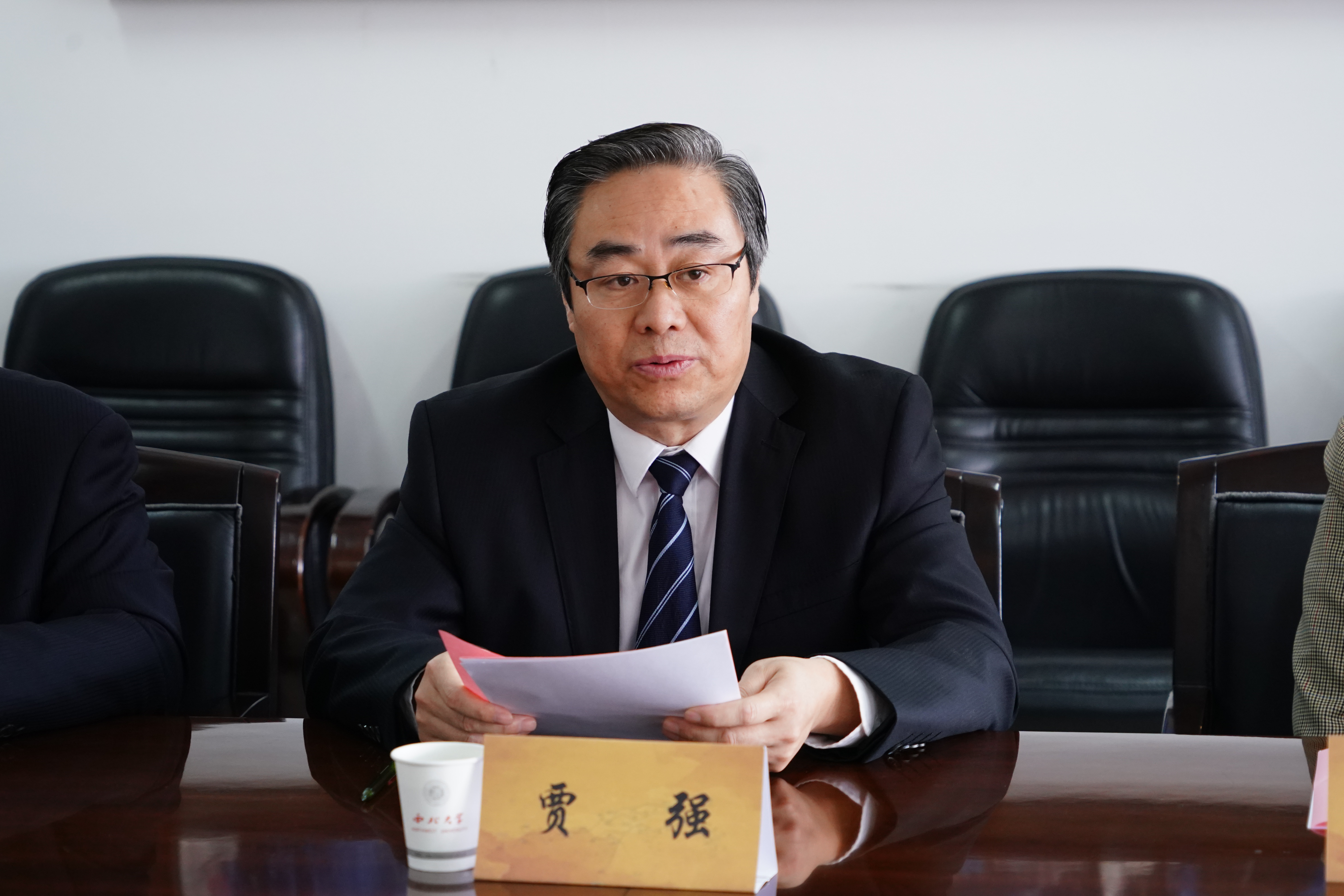 陕西省文物局副局长贾强在发言中回顾了与西北大学的历史渊源,表示此次合作将整合双方的资源,形成合力,推动文化遗产的传承,逐步满足新时期下国家对文物保护人才的需要。