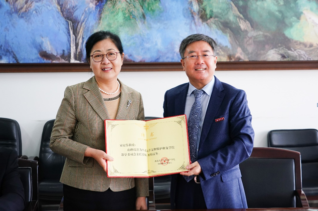 第二项,举行西北大学文物保护修复学院教学委员会主任委员聘任仪式。由西北大学校长郭立宏为宋纪蓉教授颁发聘任证书。
