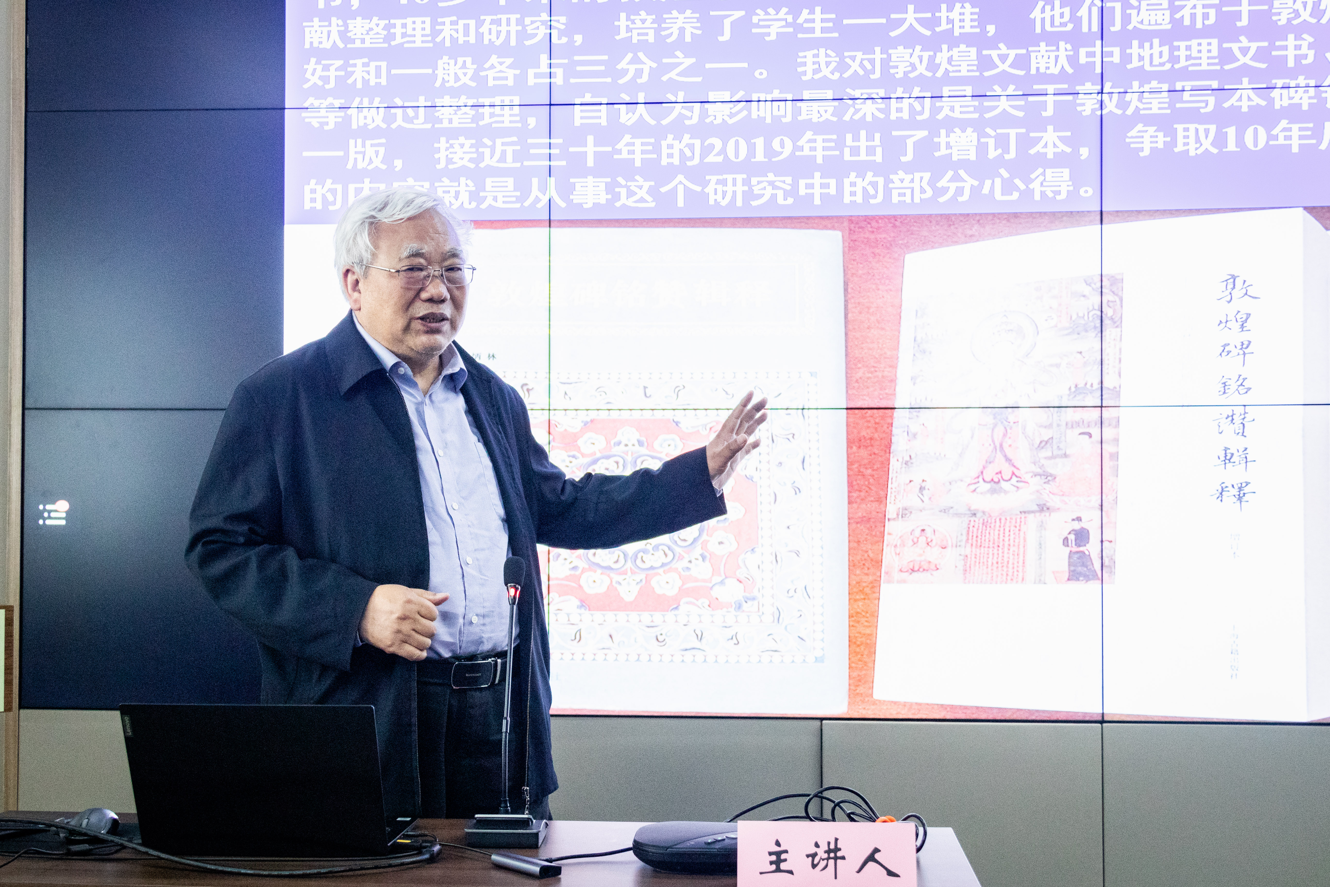 报告中,郑炳林强调,自己首要的研究依据是简牍文献,如《居延汉简》《敦煌汉简》等,并借助文献向与会师生讲述了玉门关和阳关的职能区分。随后,他介绍了简牍文献中关于西汉敦煌郡市场贸易的记载,分别讲解了贸易主体、贸易性质和贸易的商品等方面问题。他表示,敦煌当地市场是在西汉国家政府推动下进行的,且政府对部分产业是具有主导性和垄断性的,而西汉时期敦煌贸易市场的状况是唐代敦煌地区发展的雏形,具有重要的研究价值。