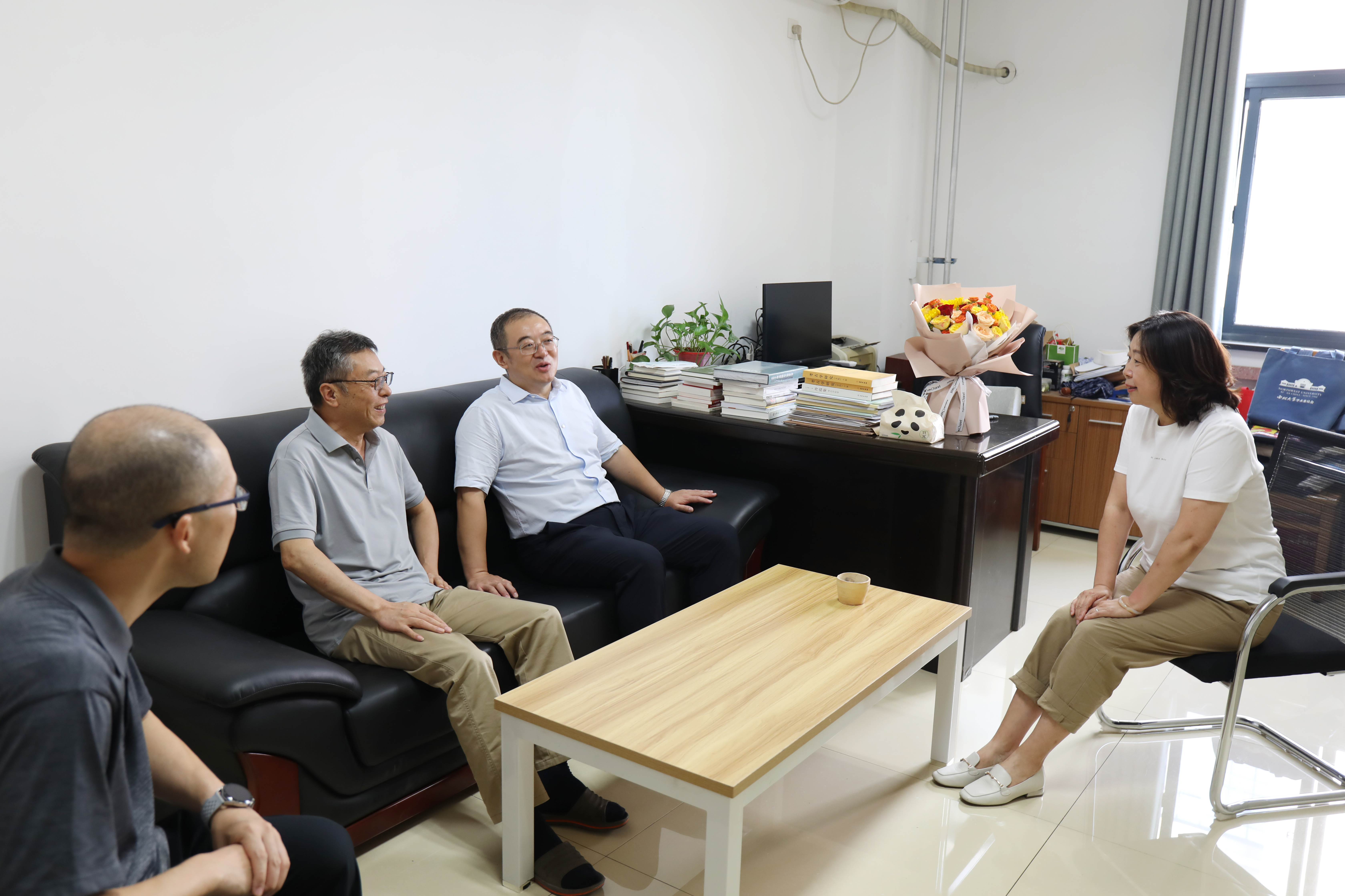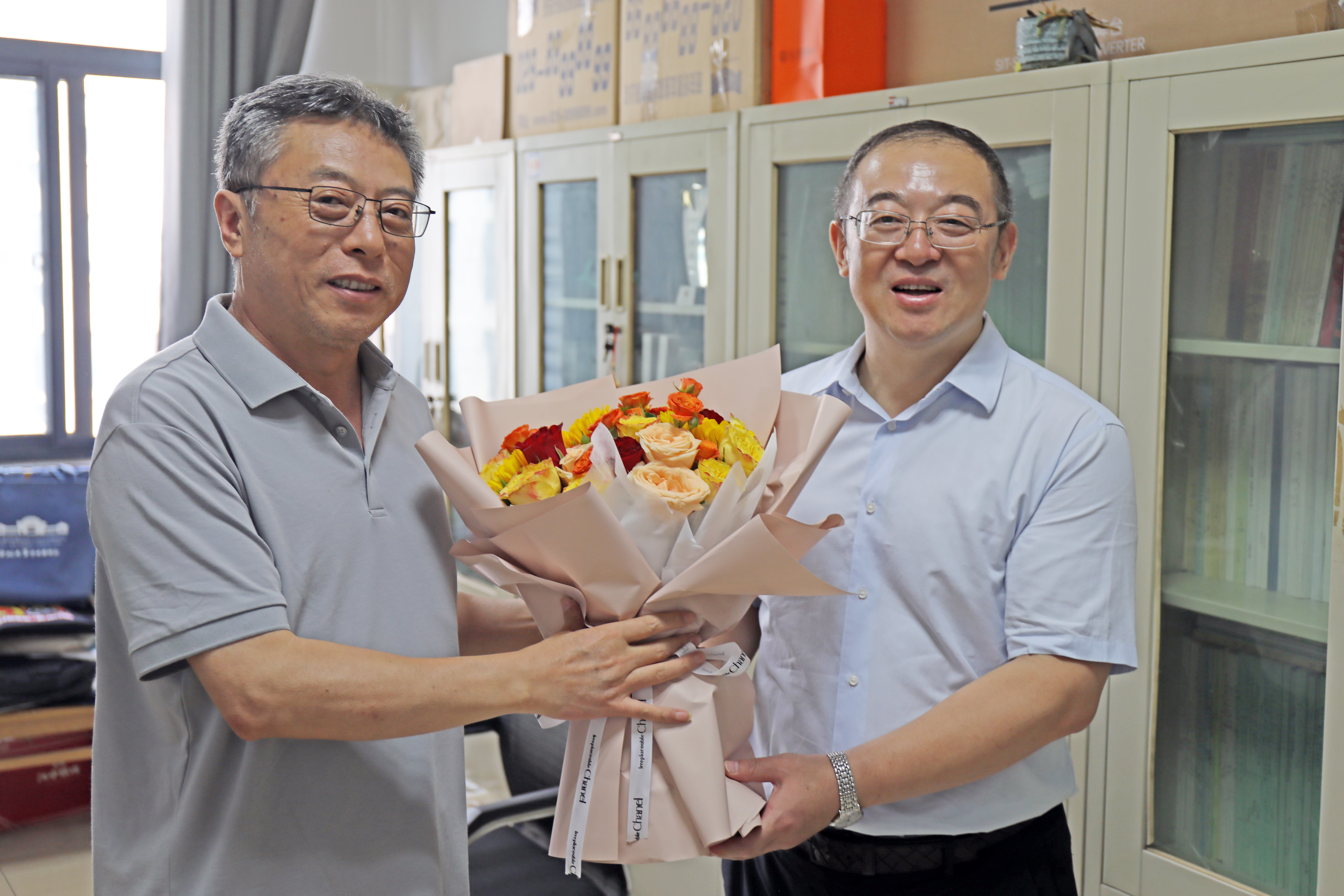 常江看望慰问了奋斗在教学科研一线的国家级高层次人才陈洪海教授、温睿教授,向他们送上鲜花和节日祝福,与他们进行亲切交谈,了解他们的工作、生活状况和所在团队的建设情况,征求他们对学校工作的意见和建议,并对他们长期以来潜心科研、悉心育人的付出和为学校教育事业发展做出的巨大贡献表示诚挚敬意和由衷感谢。
