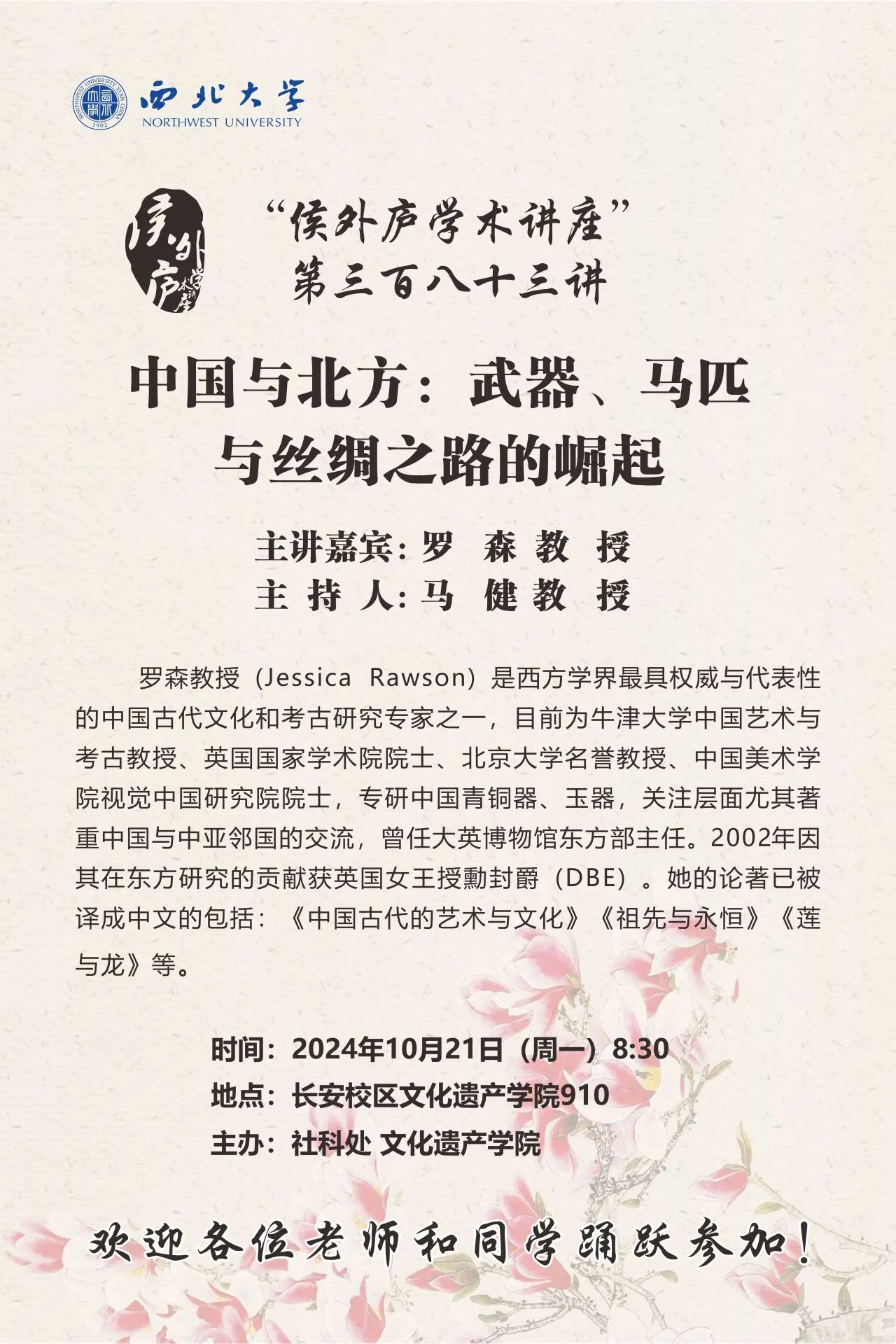 杰西卡·罗森:中国与北方:武器、马匹与丝绸之路丨“侯外庐学术讲座”第383讲暨“博望论坛”第234期